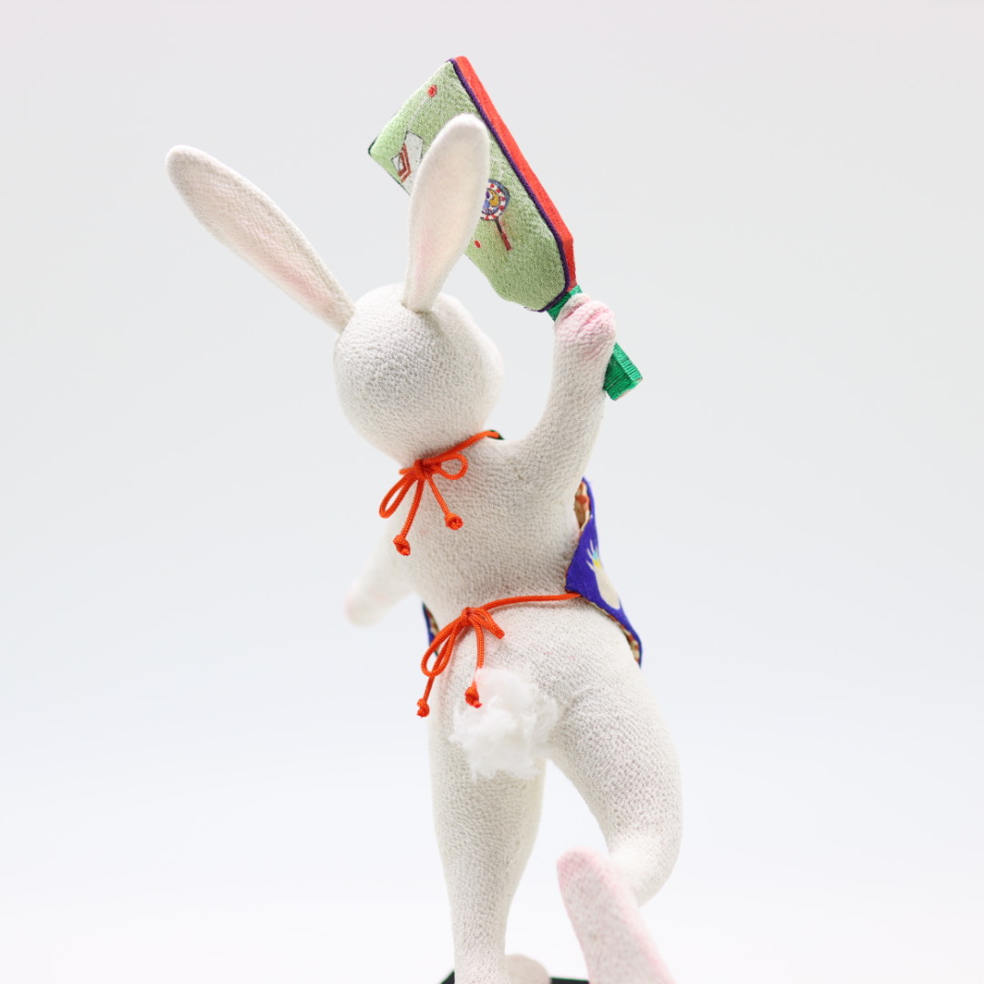 1体づつ丁寧に手作りした、世界で1つだけの作品。うさぎの長い耳が福を集めます。特に跳ねる姿は、飛躍向上・商売繁盛・出世の縁起物とされています。 お正月の干支に関わらず、お部屋に飾ってわくわくしよう!本体20cm台座5cm